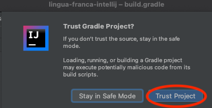 If you are prompted to a pop-up window asking if you trust the Gradle project, click Trust Project.